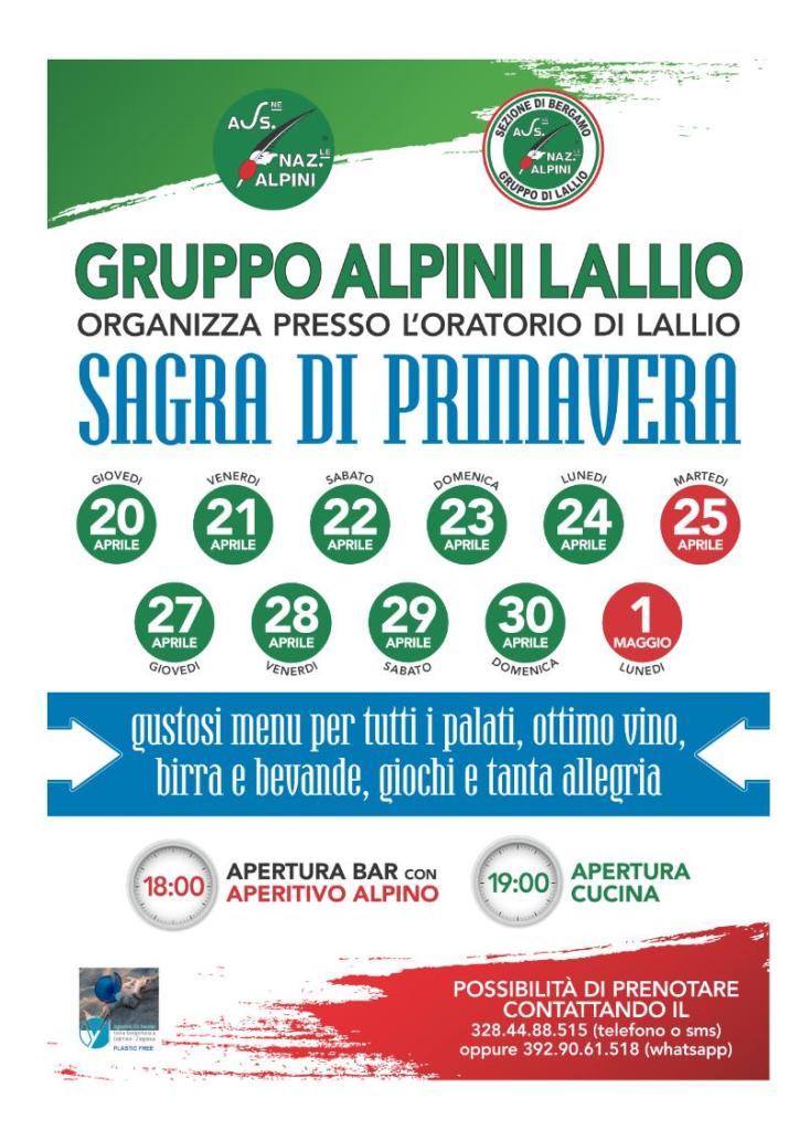 Dal 24 aprile al 4 maggio la FESTA DI PRIMAVERA a Lallio